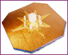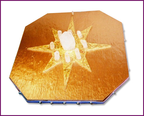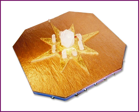When Nancy and I put the crystals in place for the first time, to complete this incredible creation, it became alive with a rainbow of colors and a very powerful flow of healing energy and much movement of spiraling winds. A kaleidoscope of sounds, colors and vibrations. The intense heat that radiates from this very fluid, healing, channeled creation, comes from a very ancient time and culture. You can feel and hear the ancient wisdom of those beings that channeled this piece to me. As I looked around the piece, I could see lost spirits and souls, coming into the center of the vortex of the piece, and being guided outward to continue their journey to the light.